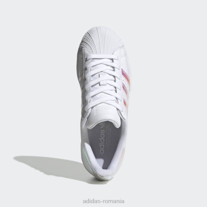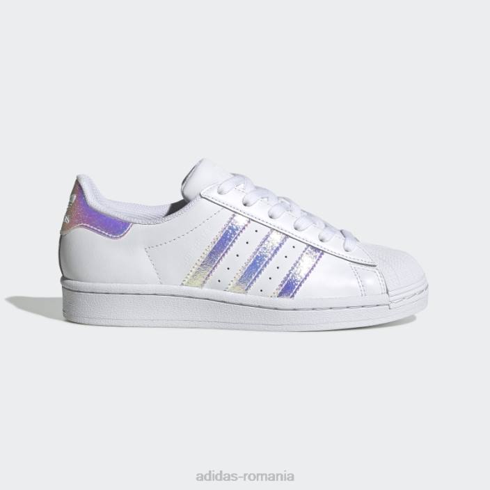 pantofi adidas superstar cu detalii irizate strălucitoare.